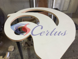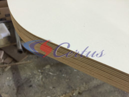 Как ни странно, но изготовление из гнутой фанеры мебели также выполняется методом фрезерной порезки. В таком случае вырезается деталь с множеством пазов, которые дают возможность согнуть материал и образуют стол, стул, кресло или полку из фанеры. Можно изготовить, например, кресло из фанеры, и другим способом: на фрезерном станке нарезают множество фигурных продольных полос, которые потом соединяются поперек, и кресло выглядит так, будто состоит из множества мелких реек во всю длину. Таким образом, при производстве мебели из фанеры на заказ материал по факту не гнется, а готовые предметы мебели выглядят гнутыми. И третий способ — это, естественно, гибка фанеры для мебели: из листа криволинейным кроем получают необходимые заготовки и загибают прессованием. Мы готовы предложить изготовление мебели из гнутой фанеры на заказ начиная от разработки чертежа и заканчивая готовым качественным изделием, покрытым лаком либо краской. Стоит отметить, что мы работаем только с профессиональными конструкторами и дизайнерами, которые не просто нарисуют красивый макет, но и точно рассчитают нагрузку и устойчивость мебели из гнутой фанеры.